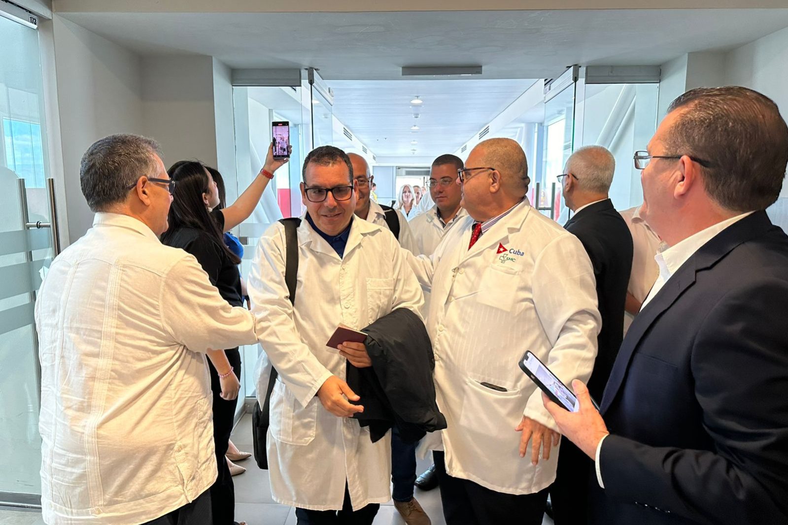 Al menos una brigada de 80 médicos, procedentes de Cuba llegó hoy al aeropuerto de Palmerola, donde fueron recibidos por el canciller de la República Eduardo Enrique Reina y la ministra de Salud, Carla Paredes.
