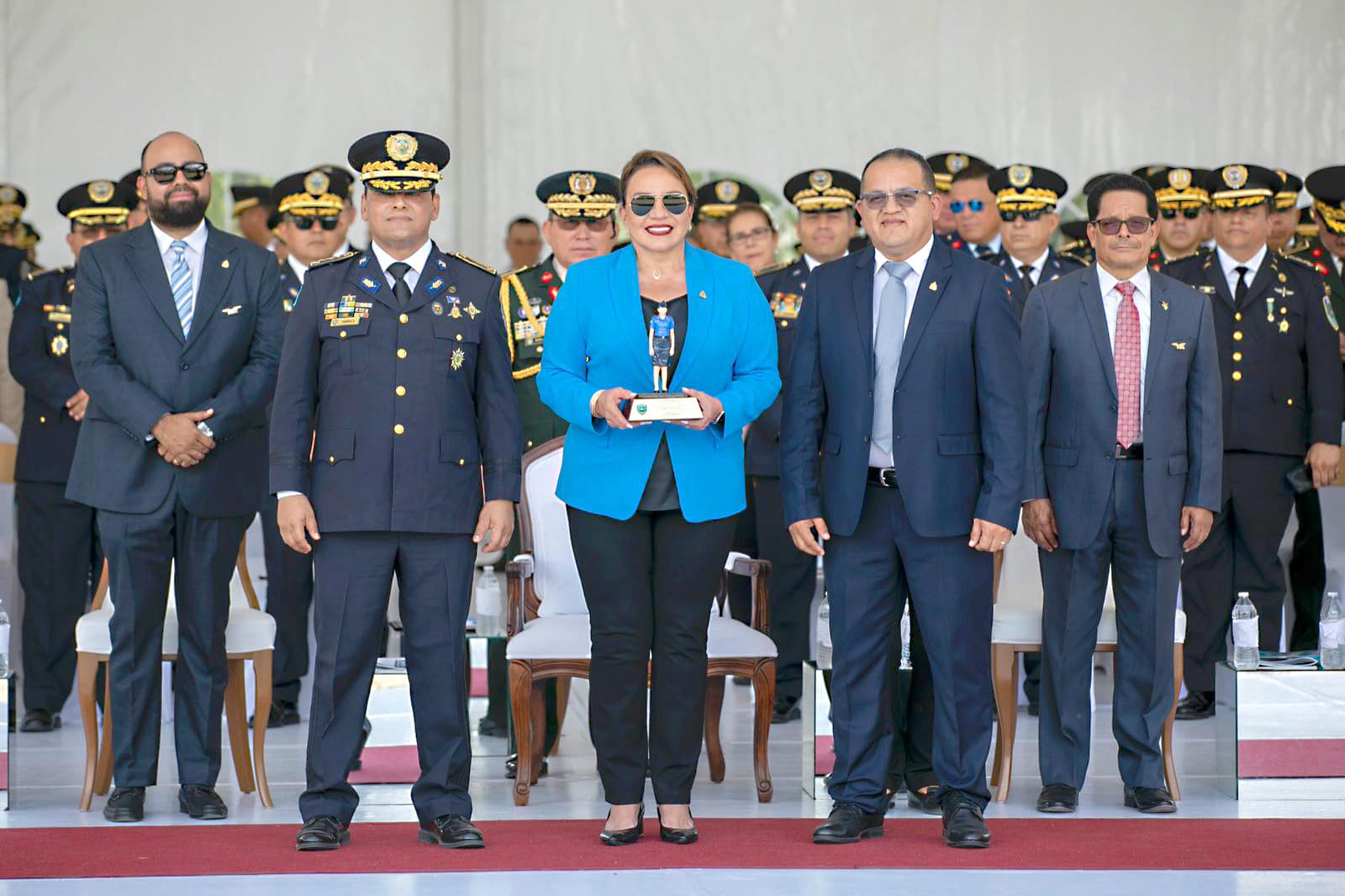 La mandataria expresó a los policías: “sus ascensos representan la confianza que la institución y el pueblo hondureño deposita en ustedes” y los exhortó a exhibir con honor sus distinciones.