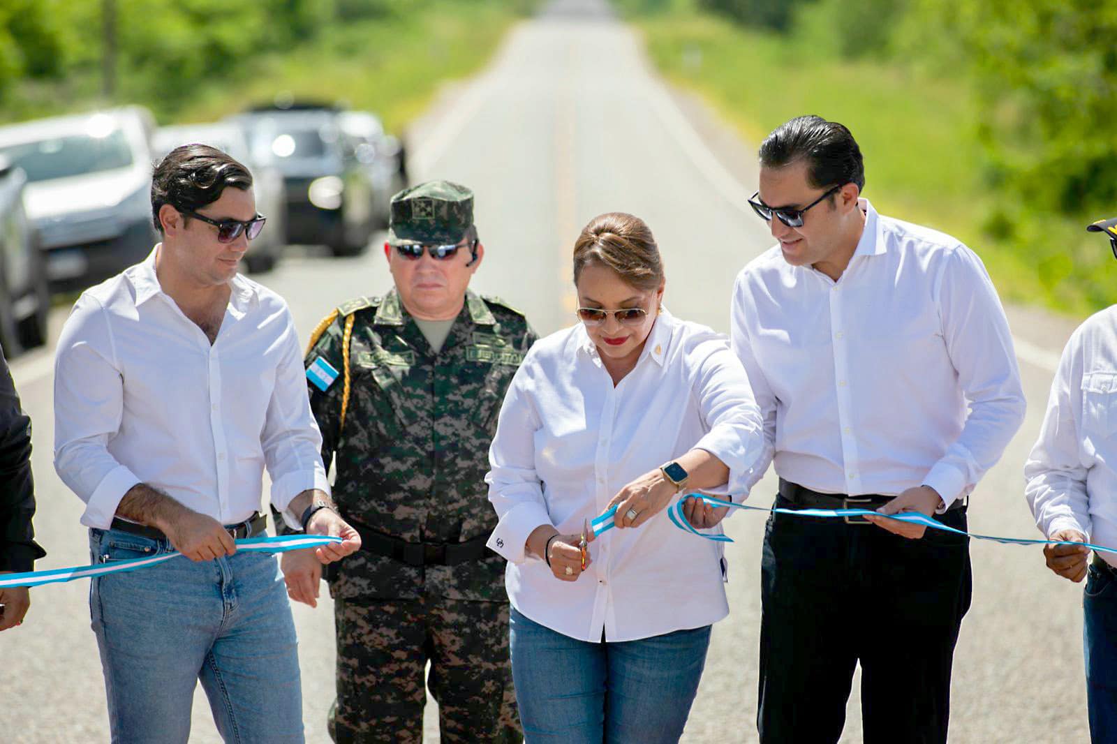 Acompañaron a la titular del Ejecutivo el secretario privado Héctor Manuel Zelaya; los ministros de Infraestructura y Transporte, Octavio Pineda; Salud, Carla Paredes y Daniel Sponda, de Educación.