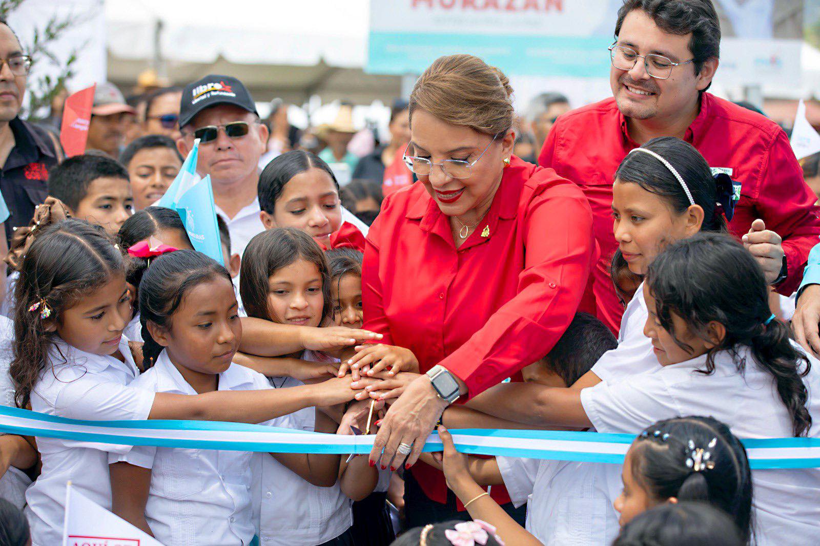 La primera mujer presidenta en la historia de Honduras dijo sentirse contenta y orgullosa de hacer obras en lugares remotos y recónditos que, al igual que los doce mil centros educativos, estuvieron huérfanos de la ayuda gubernamental durante doce años y siete años.