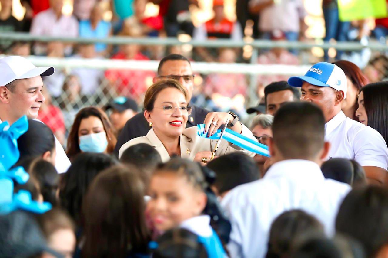 La presidenta Xiomara Castro inauguró este martes la reconstrucción de la Escuela Experimental de Niños para la Música, ubicada en la colonia Hato de Enmedio, como parte de una jornada de entregas de infraestructura social. Durante el evento también se habilitó la cancha número 72, y minutos después, la número 73 en la colonia Óscar A. Flores.