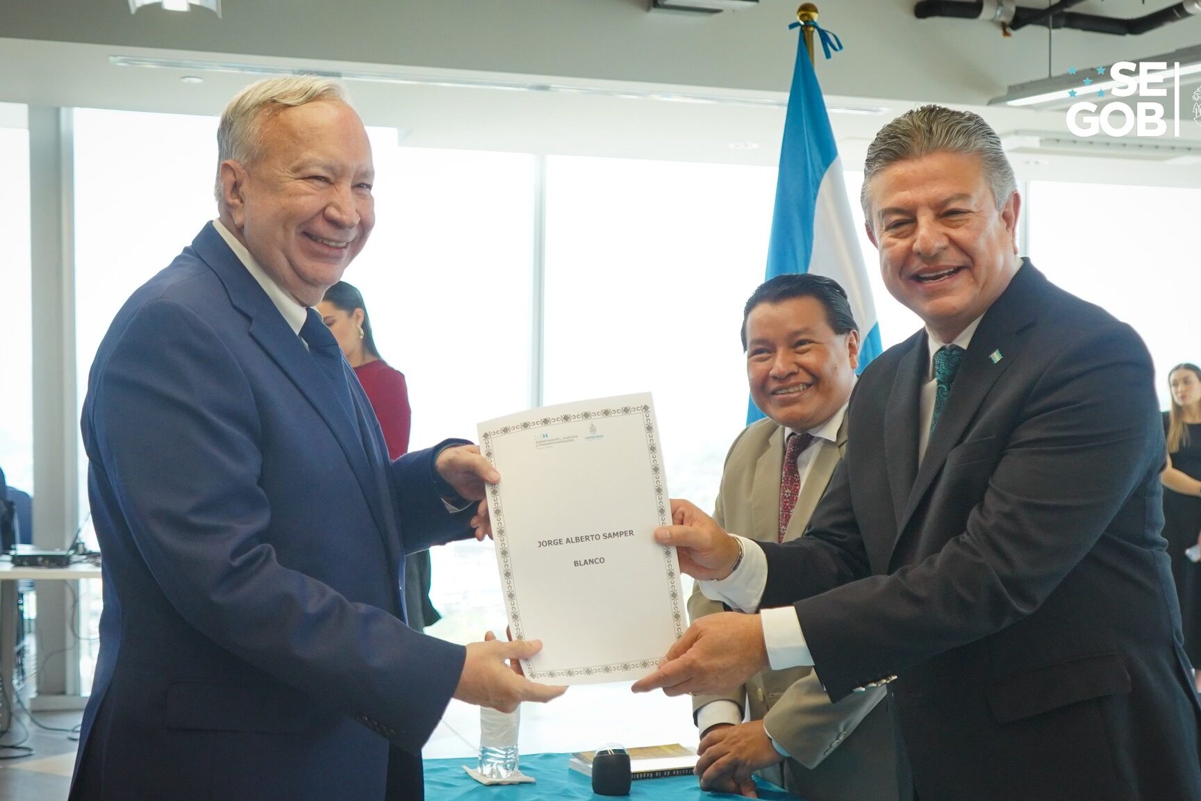 El Secretario de Gobernación, Justicia y Descentralización, Tomás Vaquero Morris, presidió el evento y felicitó a los ahora hondureños por su valiente decisión. “Hoy se convierten en parte viva de esta patria que los recibe con los brazos abiertos. Honduras no solo es su residencia, ahora es su hogar y su bandera”, expresó.