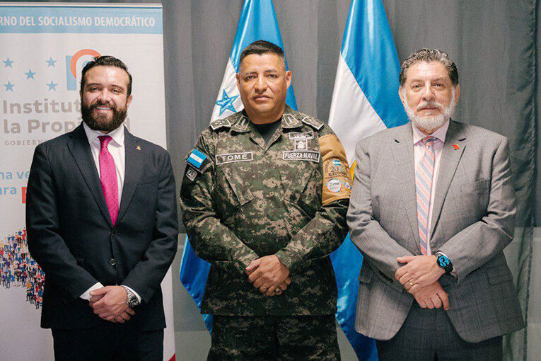 El subsecretario de Defensa Nacional, Orlando Garner Ordóñez, y el secretario ejecutivo del Instituto de la Propiedad (IP), Francisco Bocanegra Murcia, firmaron este día Memorando de Entendimiento para la instalación de mareógrafo en la Base Naval de Puerto Cortés y en futuros sitios de interés.