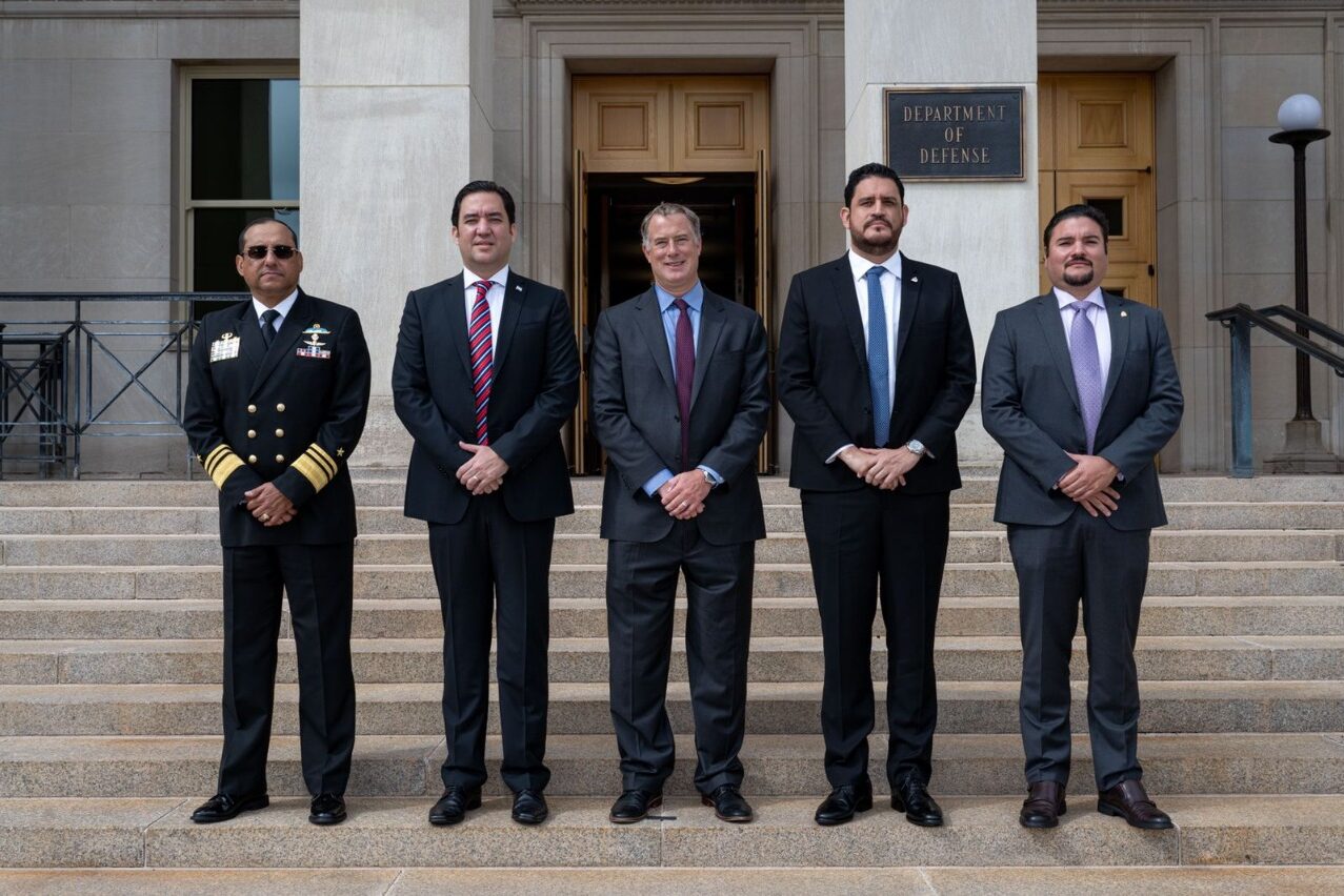 El secretario privado de la presidencia, Héctor Zelaya, junto al ministro de Defensa, José Manuel Zelaya Rosales, el jefe del Estado Mayor Conjunto de las Fuerzas Armadas, José Jorge Fortín, y el embajador de Honduras en Washington, Javier Bú, se reunieron hoy en el Pentágono con Daniel P. Erikson, subsecretario Adjunto de Defensa para el hemisferio occidental en el Departamento de Defensa de los Estados Unidos, con el objetivo de fortalecer las relaciones bilaterales entre ambas naciones.