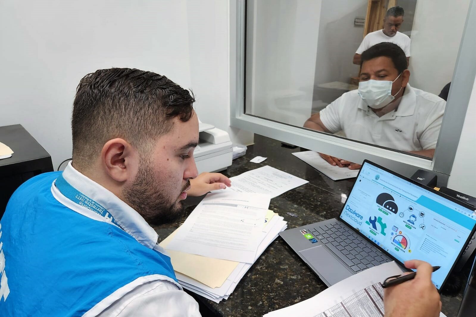 El delegado regional del Instituto Hondureño de Transporte Terrestre (IHTT) en el Litoral Atlántico, Marco Contreras, informa sobre la instalación de una ventanilla móvil en Roatán, Islas de la Bahía, con el fin de brindarle atención a los concesionarios, apoderados legales y transportistas de la zona.