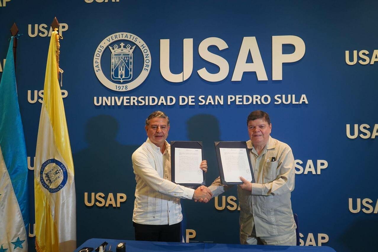 El titular de la Secretaría de Gobernación, Justicia y Descentralización, Tomás Vaquero suscribió un convenio de cooperación con el rector por Ley de la Universidad de San Pedro Sula (USAP), Senén Villanueva con la finalidad de establecer líneas de colaboración entre ambas entidades.