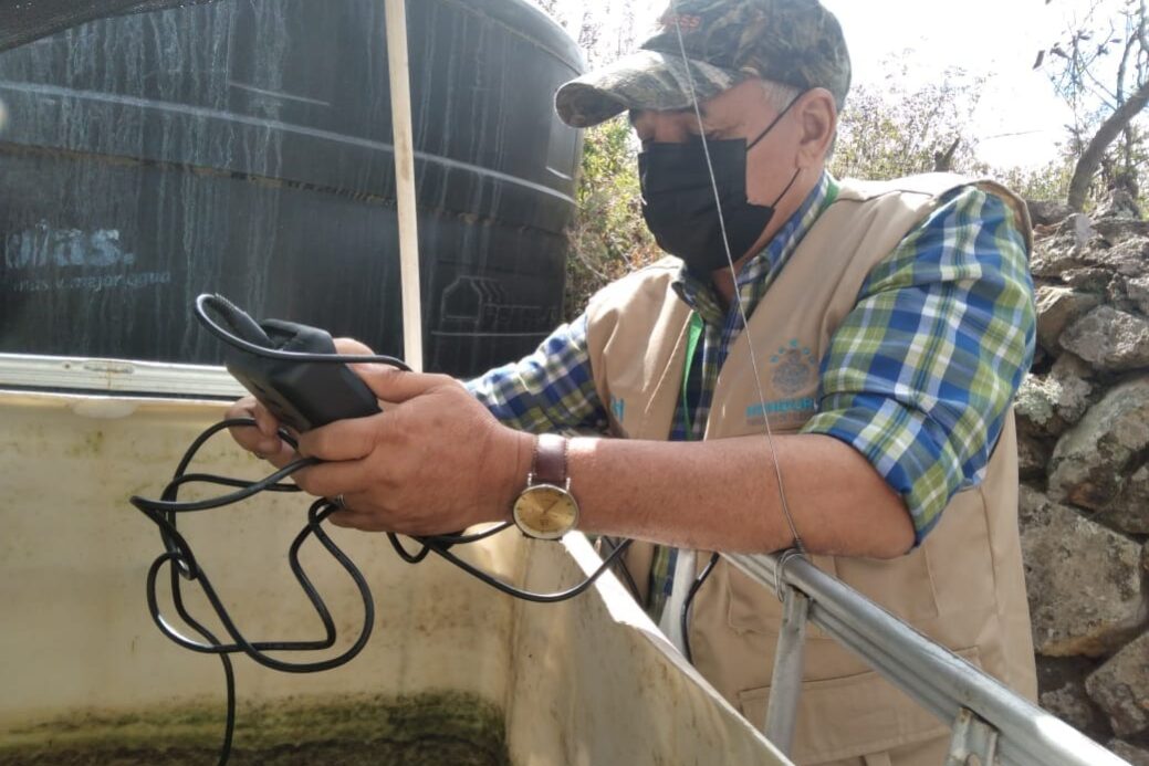 El secretario de la Cadena Acuícola, José Angel Guerrero, brindó asesoría técnica en análisis de agua: Nitratos, Nitrito y Amonia, para prevención y tratamiento de enfermedades de los peces sembrados, tilapia (Saprolegnia), hongos en los peces, la toma de parámetros fisicoquímicos de agua.