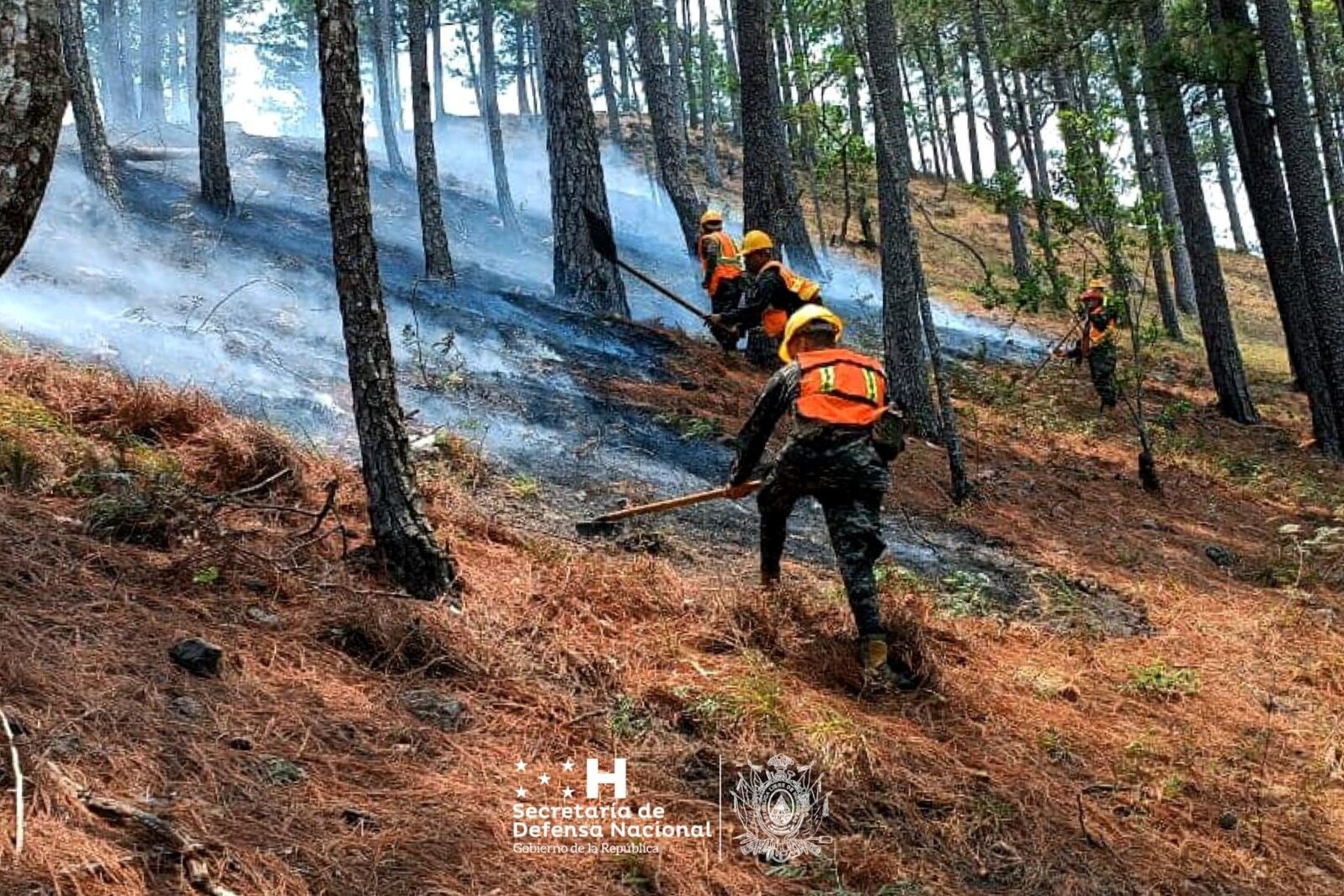 Bomberos forestales militares de las Fuerzas Armadas de Honduras, coordinados por el Comando De Protección Del Bosque, continúan con extensas jornadas para apagar las llamas que afectan reservas forestales, en diferentes sectores del país.