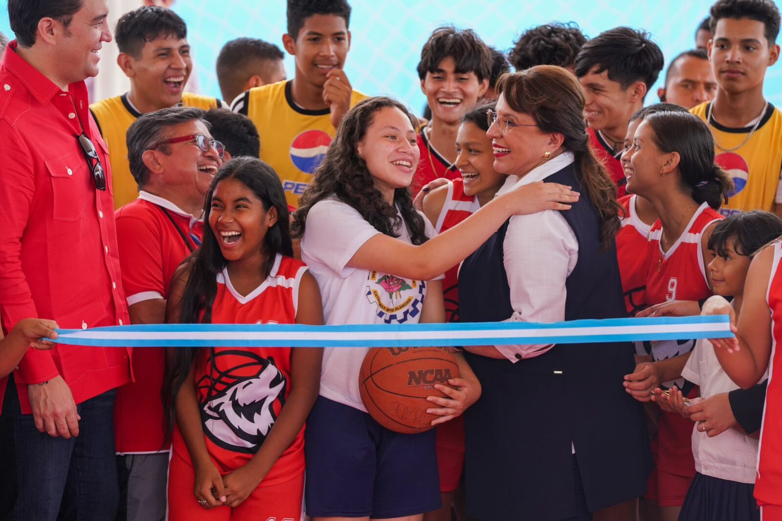 La Presidenta Xiomara Castro junto al titular de la Comisión Nacional del Deporte, Educación Física y Recreación (Condepor), Mario Moncada, inauguró este lunes una cancha multiusos en Catacamas, Olancho.