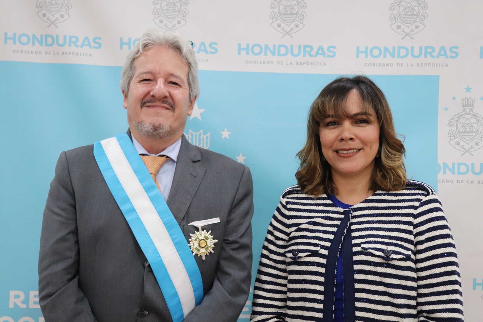 En nombre de la Presidenta Xiomara Castro, la Embajadora Cindy Larissa Rodríguez, Secretaria de Relaciones Exteriores y Cooperación Internacional por Ley, fue la encargada de colocar el galardón al Embajador Pineda, cuya gestión se ha distinguido por fomentar la solidaridad de Francia en beneficio del pueblo hondureño, dejando un grato recuerdo y el agradecimiento de esta nación amiga.