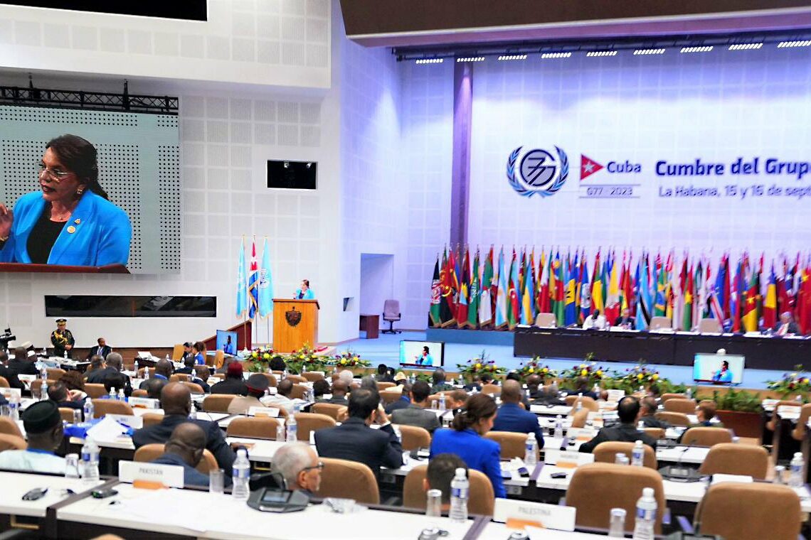 La Presidenta Iris Xiomara Castro participó en la Cumbre del Grupo de los 77+ China, celebrada en La Habana, Cuba, donde presentó propuestas para el desarrollo entre los países miembros y denunció los bloqueos económicos de los que son víctimas Nicaragua, Venezuela y Cuba.