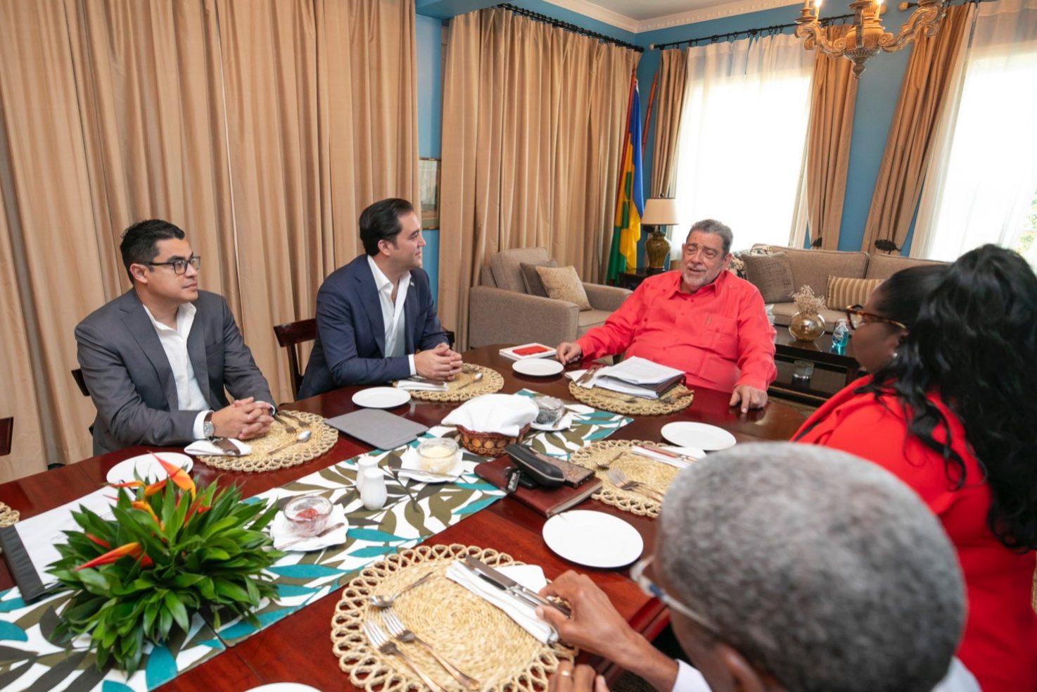 El Secretario Privado de la Presidencia, Héctor Zelaya, expresó: “recibimos con afecto y agradecimiento la cálida hospitalidad del Primer Ministro de San Vicente y las Granadinas, Ralph Gonzalvez”.