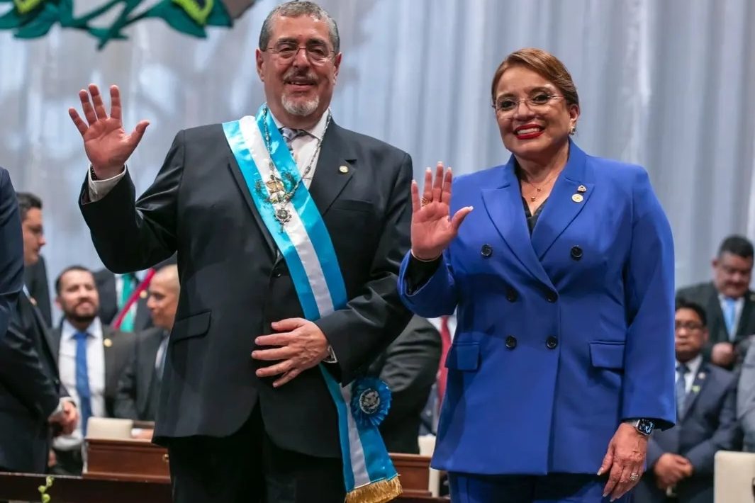 La Presidenta Xiomara Castro esperó atenta hasta el último momento la ceremonia de investidura del nuevo gobernante de Guatemala, Bernardo Arévalo, pese al dilatado proceso de juramentación que se prolongó por más de ocho horas.